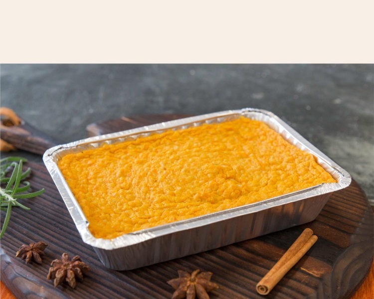 Lanttu, siirappi, laktoositon KERMA, KANANMUNA, maissitärkkelys, laktoositon VOI, suola (0,6 %), mausteet (muskottipähkinä, valkopippuri), säilöntäaine (E202).