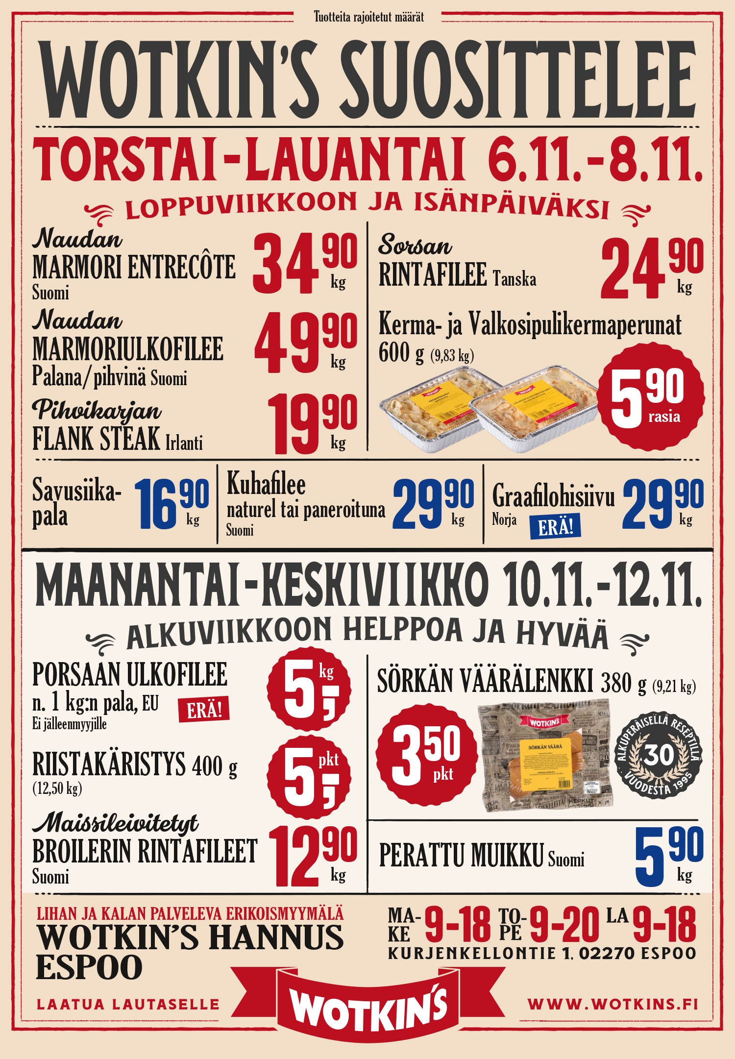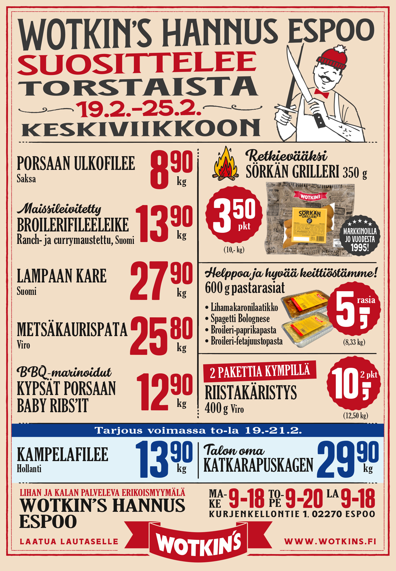 Espoon Hannuksen myymälämme palvelee maanantaista lauantaihin Lidlin naapurissa. Myymälästä löydät palvelevan liha- ja kalatiskin, korkealuokkaiset oman tehtaan jalosteet ja keittiön maukkaat kotiruoat. Sen lisäksi paljon muita uusia herkkuja.